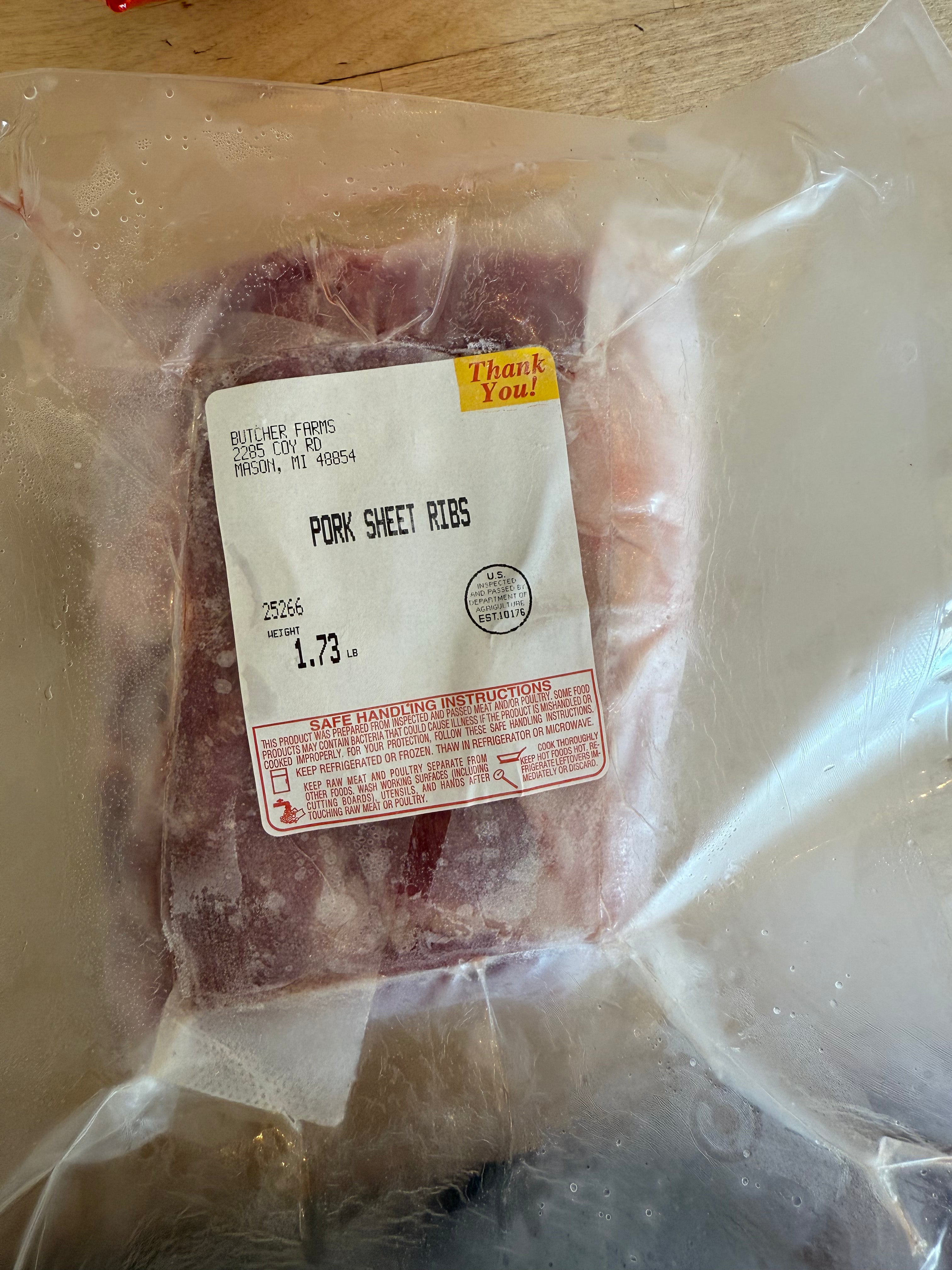 Pork Sheet Ribs Butcher Farms Sale! from 1000 /per Qty. Add to Cart This item is a recurring or deferred purchase. By continuing, I agree to the cancellation policy and authorize you to charge my payment method at the prices, frequency and dates listed on this page until my order is fulfilled or I cancel, if permitted. This item is currently on backorder but you can still purchase it now and we'll ship as soon as more become available.